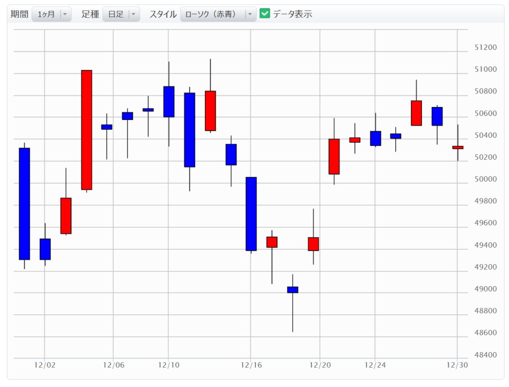 日経が5万を超えて大納会を終えるのは初めてらしいです。やっと日本もインフレ気味になってきてるのかもしれませんね。