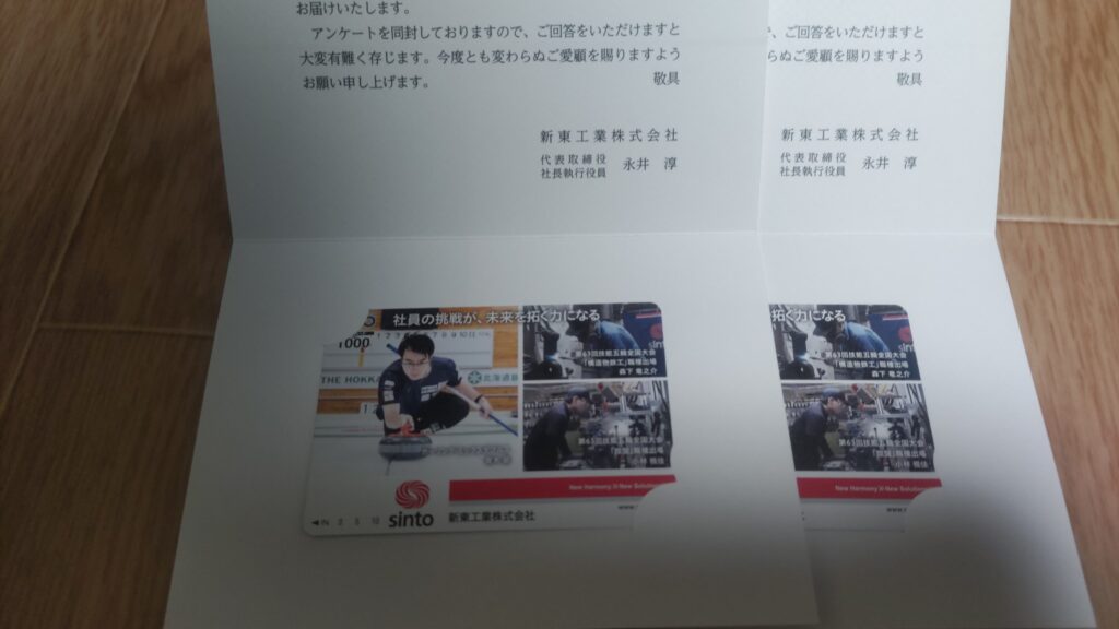新東工業のクオカードも届きました。1年以上保有が条件がついていて今回初取得です。余裕があったら子どもの口座で買い増しして4名義にしてもいいかなって考えています。アンケートのクオカードも当たると嬉しいな