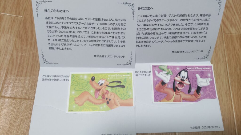 オリエンタルランドからディズニーのチケットが届きました。こちらはクロスです。今年の9月のみ100株保有で貰えるとのことでクロスしました。義理の母がよくディズニーに行くので譲ろうと思っています。