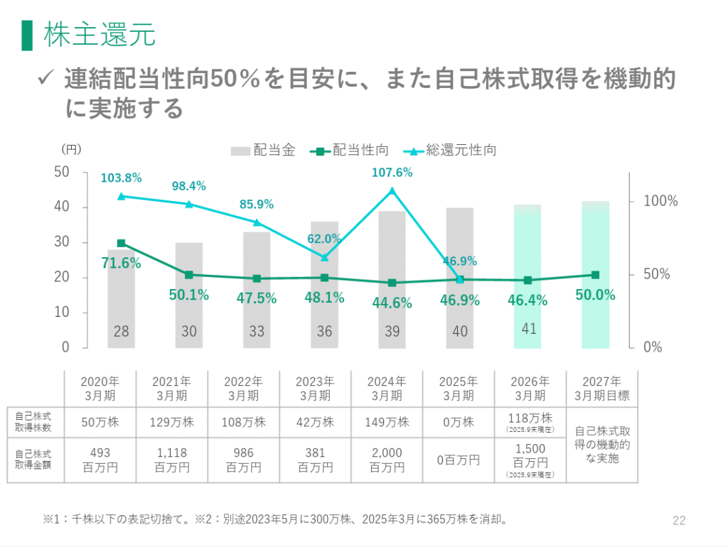 主に資料の雰囲気と配当や優待、還元姿勢について書いているページをピックアップしていきますね。