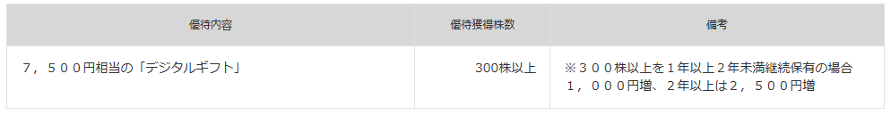 私が持っている中では珍しいデジタルギフト銘柄です。