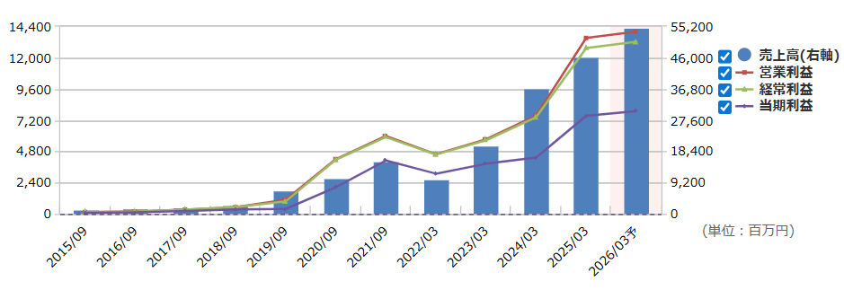 チャートはかなり低迷していますが、売り上げや利益は伸びています。プライムですがどちらかというとグロース株よりの動きですね。しかしグロース株にしては割安といったところでしょうか。
