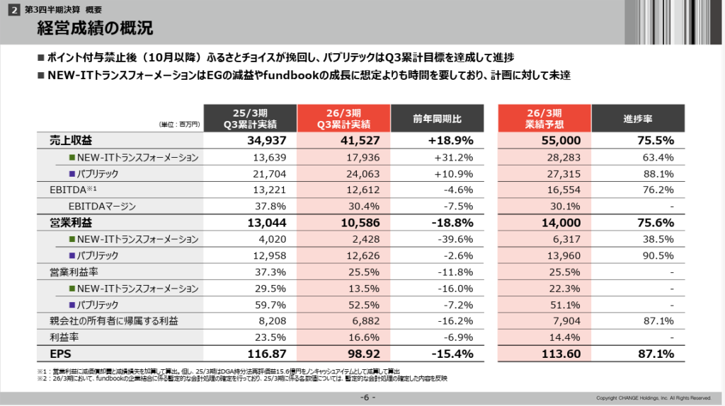 IT活用支援サービス会社。「生産性をCHANGEする」ビジョンのもと、IT技術を活用したNEW-ITトランスフォーメーション事業(民間企業向け)、パブリテック事業(公共・自治体向け)を展開。NEW-ITトランスフォーメーション事業はIT活用(AI、IoT、ビッグデータ、クラウド、セキュリティ)により民間DX・M&A仲介(BPO、M&A仲介、研修・コンサル)、サイバーセキュリティを支援。パブリテック事業は地方創生(ふるさと納税「ふるさとチョイス」、物流関連、観光)、公共DX(LoGoシリーズ、BPR、コンサル、文教ICT)サービスを提供。SBIホールディングスの持分法適用会社。